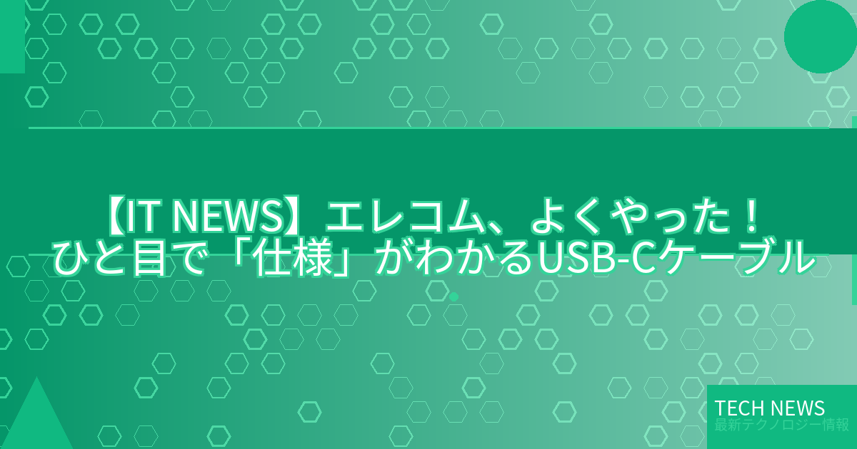 記事タイトル:エレコム、よくやった! ひと目で「仕様」がわかるUSB-Cケーブル