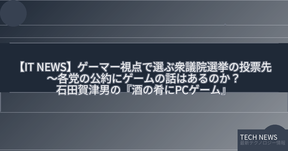 【IT NEWS】ゲーマー視点で選ぶ衆議院選挙の投票先 ~各党の公約にゲームの話はあるのか?石田賀津男の『酒の肴にPCゲーム』