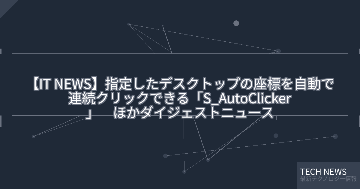 ・元記事タイトル:指定したデスクトップの座標を自動で連続クリックできる「S_AutoClicker」 ほか【ダイジェストニュース】