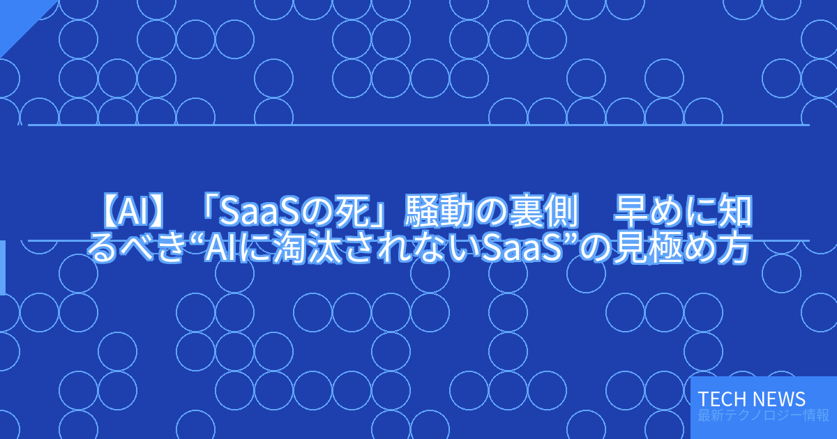 ・元記事タイトル:「SaaSの死」騒動の裏側 早めに知るべき“AIに淘汰されないSaaS”の見極め方
