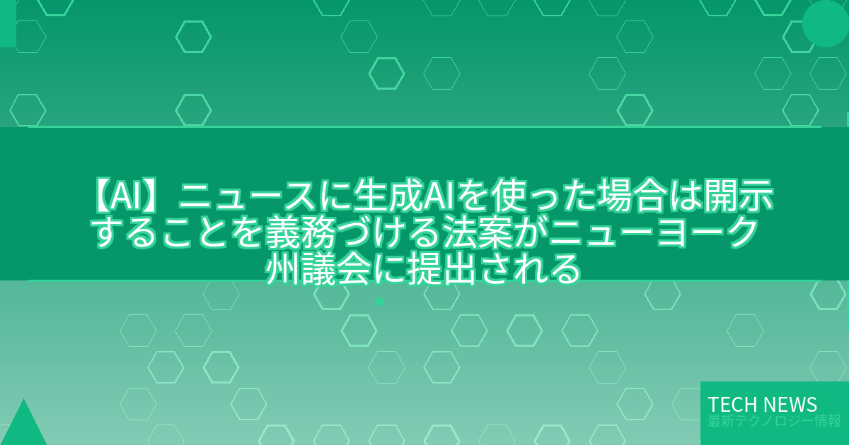記事タイトル:ニュースに生成AIを使った場合は開示することを義務づける法案がニューヨーク州議会に提出される
