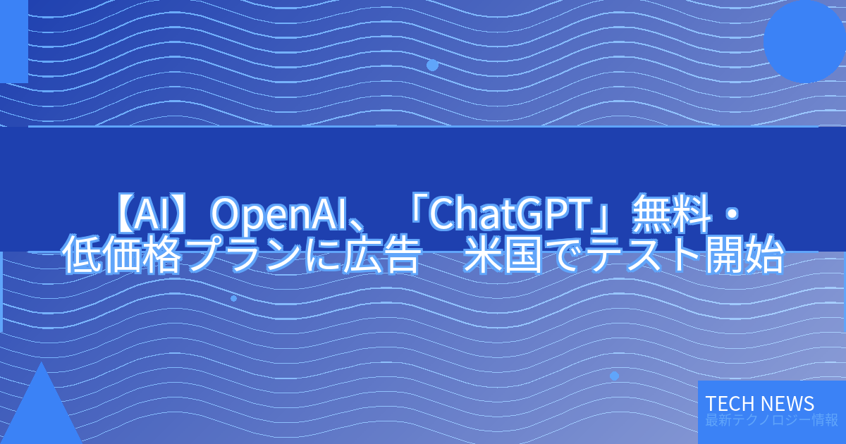 記事タイトル:OpenAI、「ChatGPT」無料・低価格プランに広告 米国でテスト開始