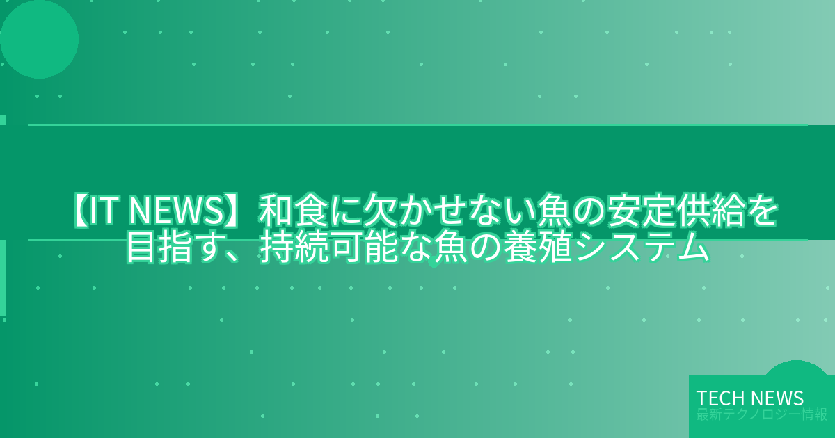 【IT NEWS】和食に欠かせない魚の安定供給を目指す、持続可能な魚の養殖システム