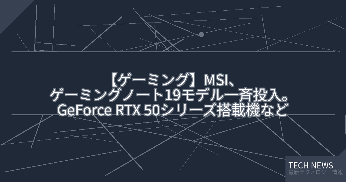 記事タイトル:MSI、ゲーミングノート19モデル一斉投入。GeForce RTX 50シリーズ搭載機など