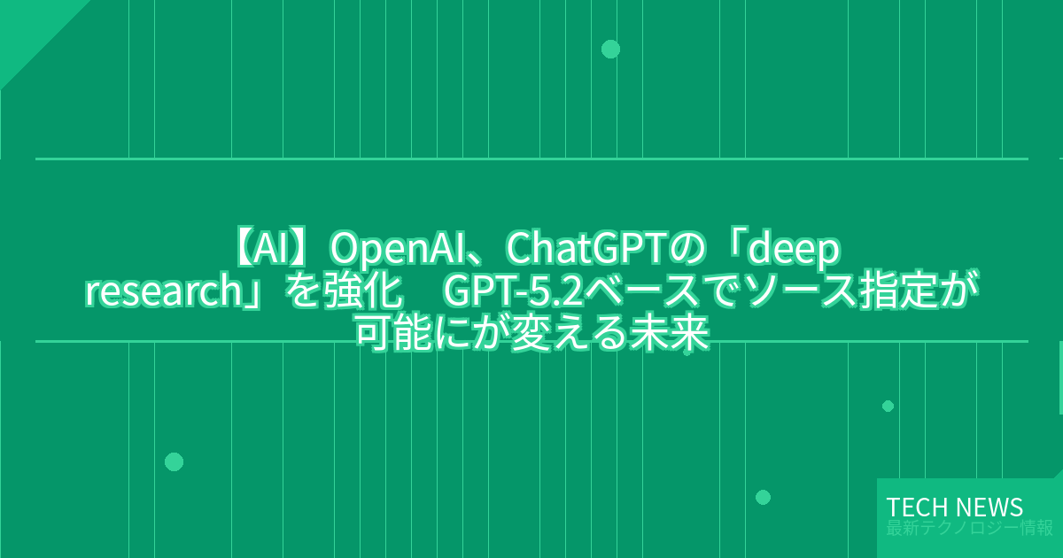 記事タイトル:OpenAI、ChatGPTの「deep research」を強化 GPT-5.2ベースでソース指定が可能に