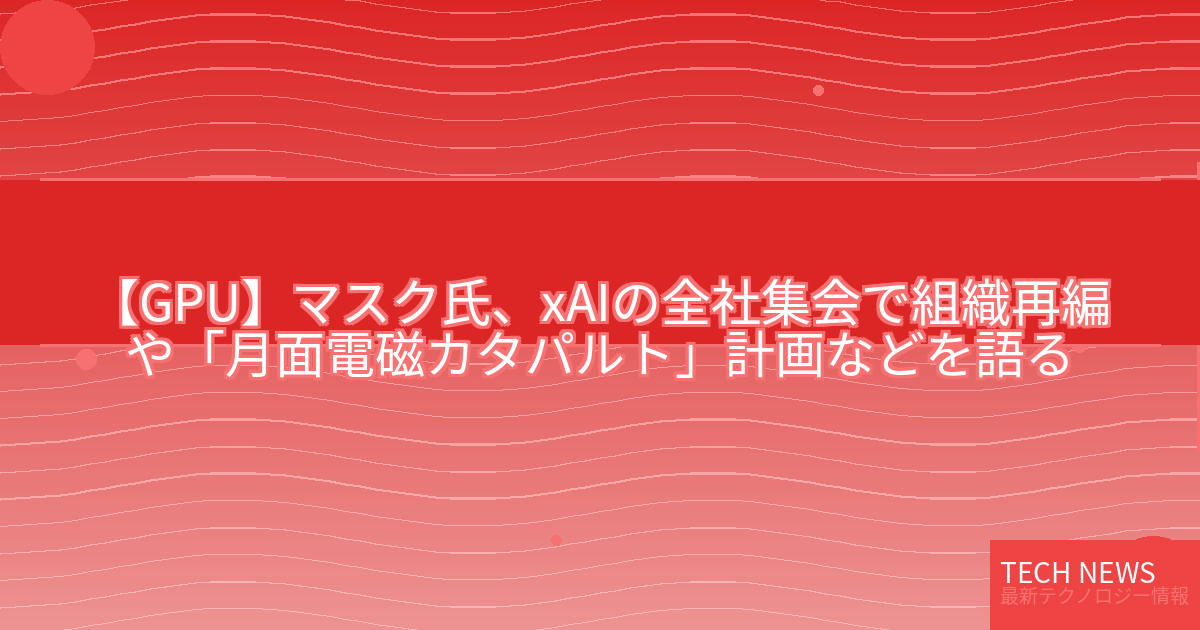・元記事タイトル:マスク氏、xAIの全社集会で組織再編や「月面電磁カタパルト」計画などを語る