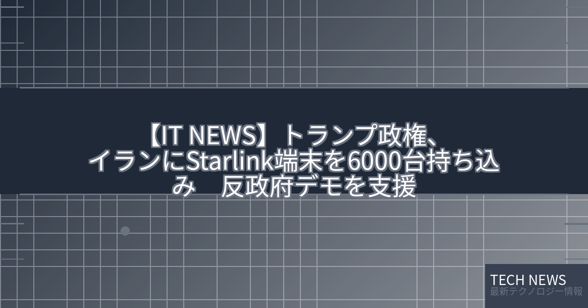 この件は、米国のトランプ政権がイランの反政府運動を支援するためにSpaceXのStarlink衛星通信サービスの端末をイラン国内に持ち込んだという、極めて重要かつ複雑な事例です。Starlinkは、低軌道衛星を使ったグローバルなブロードバンドインターネットサービスで、ユーザーは小型の端末を使ってオンラインに接続できます。