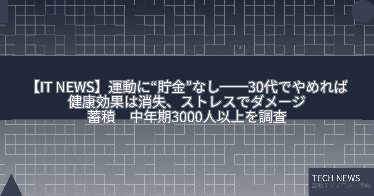 【IT NEWS】運動に“貯金”なし──30代でやめれば健康効果は消失、ストレスでダメージ蓄積 中年期3000人以上を調査
