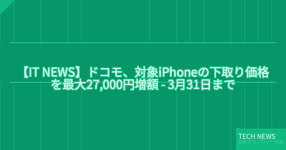記事タイトル:ドコモ、対象iPhoneの下取り価格を最大27,000円増額 – 3月31日まで
