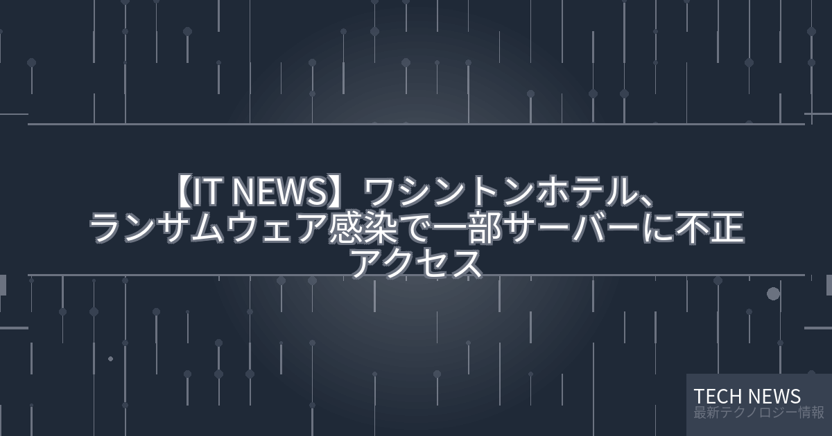 記事タイトル:ワシントンホテル、ランサムウェア感染で一部サーバーに不正アクセス