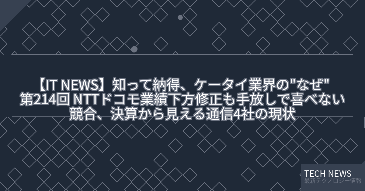 記事タイトル:知って納得、ケータイ業界の”なぜ” 第214回 NTTドコモ業績下方修正も手放しで喜べない競合、決算から見える通信4社の現状