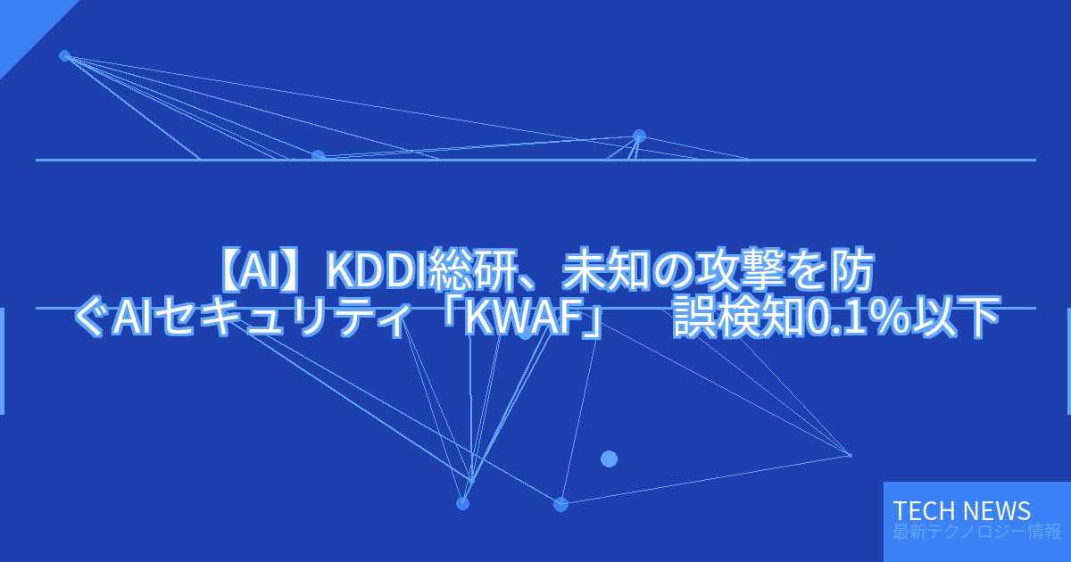 記事タイトル:KDDI総研、未知の攻撃を防ぐAIセキュリティ「KWAF」 誤検知0.1%以下