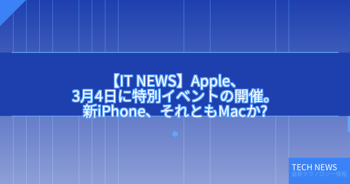 Appleが3月4日に特別イベントを開催すると発表したニュースは、テクノロジー業界の注目を集めています。このイベントで発表されるのは、新しいiPhoneモデルか、あるいはMacシリーズの更新モデルと期待されています。