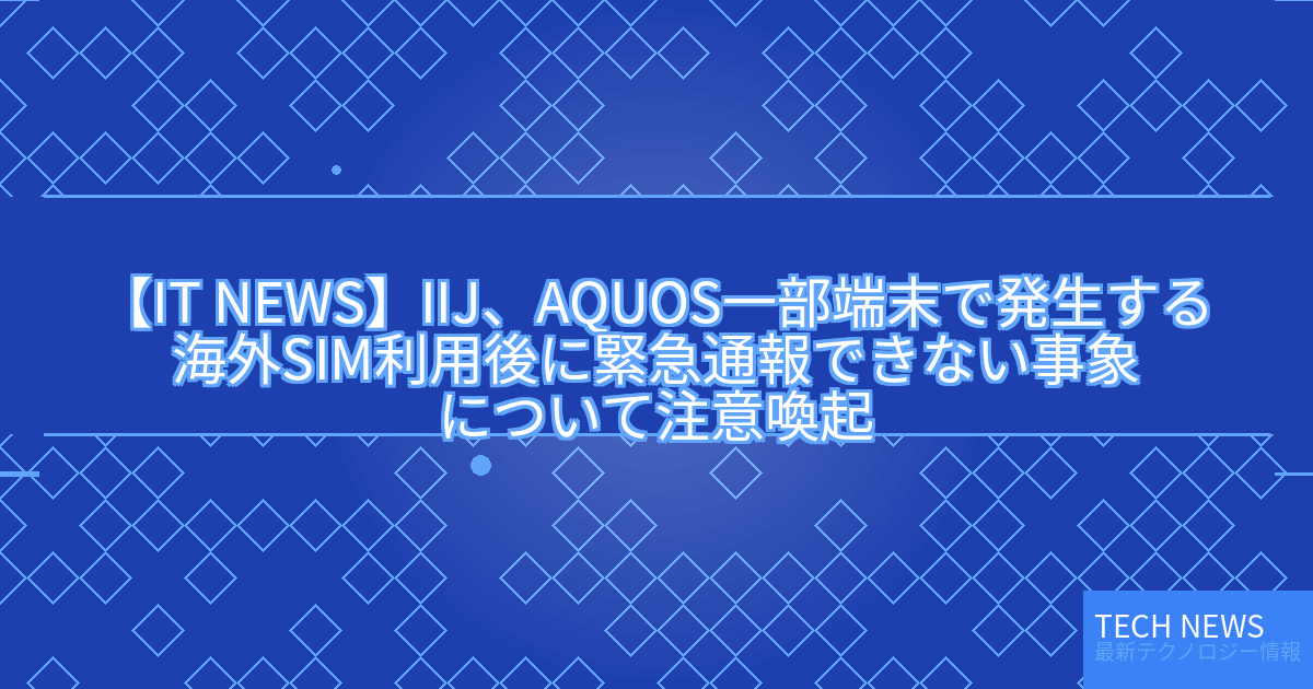 記事タイトル:IIJ、AQUOS一部端末で発生する海外SIM利用後に緊急通報できない事象について注意喚起