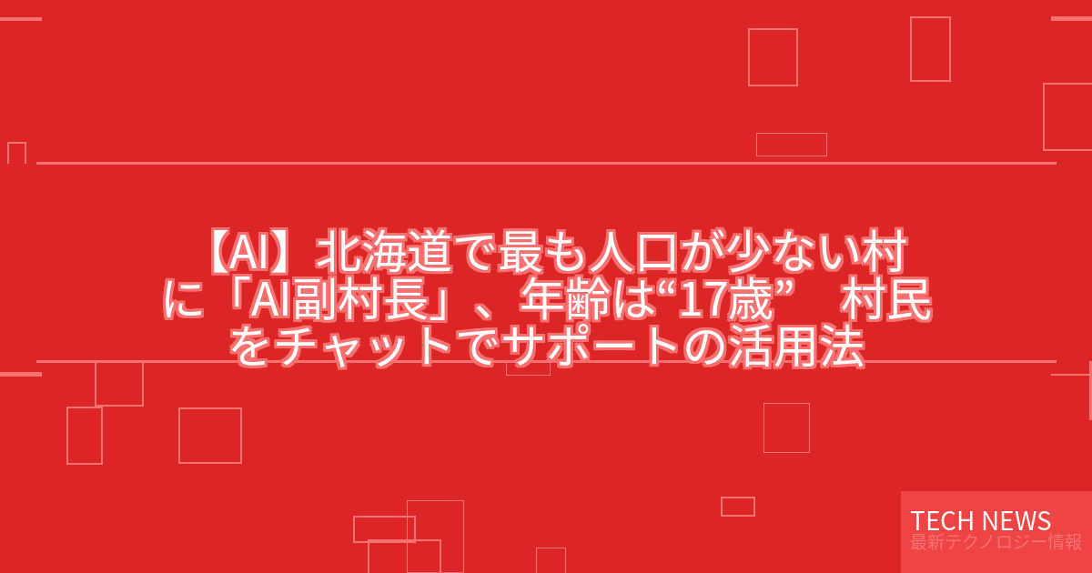 記事タイトル:北海道で最も人口が少ない村に「AI副村長」、年齢は“17歳” 村民をチャットでサポート