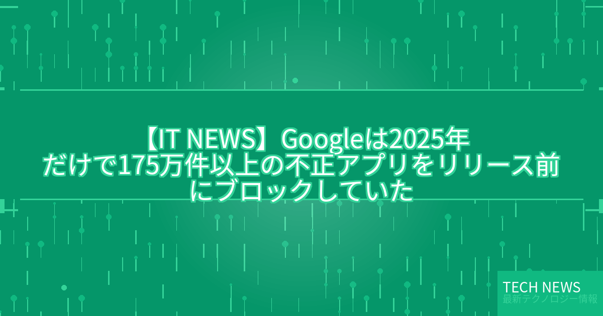記事タイトル:Googleは2025年だけで175万件以上の不正アプリをリリース前にブロックしていた