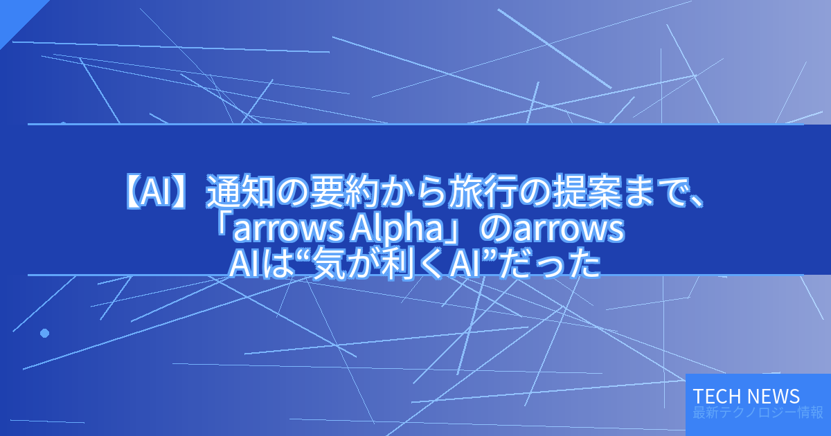 記事タイトル:通知の要約から旅行の提案まで、「arrows Alpha」のarrows AIは“気が利くAI”だった