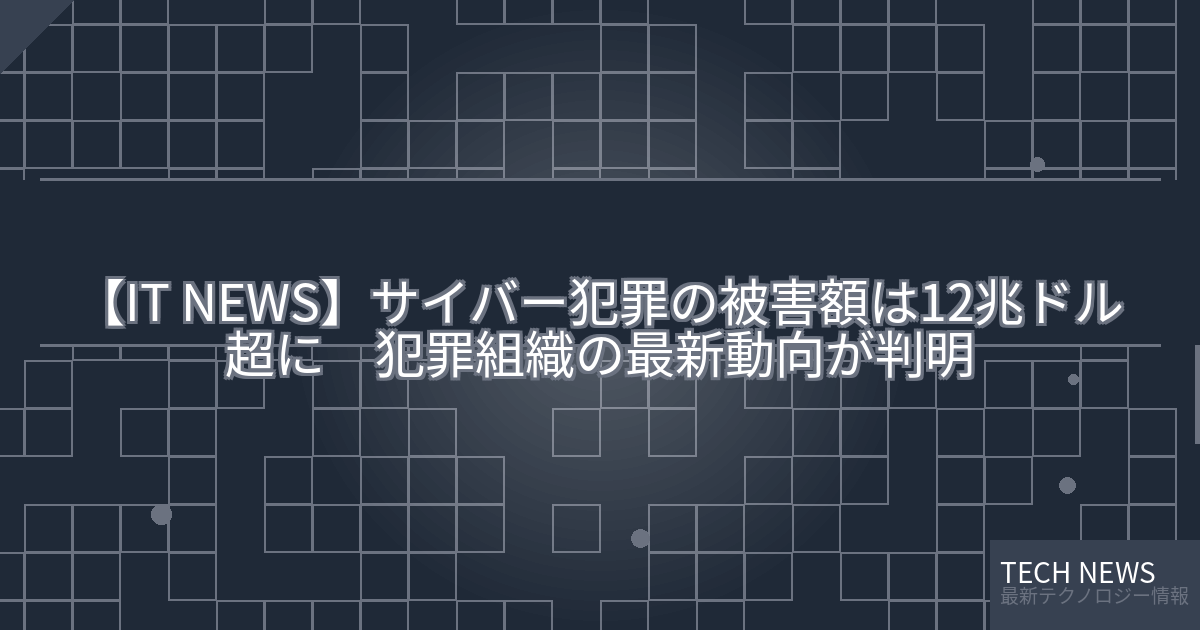 記事タイトル:サイバー犯罪の被害額は12兆ドル超に 犯罪組織の最新動向が判明
