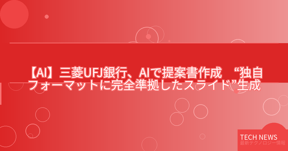 記事タイトル:三菱UFJ銀行、AIで提案書作成 “独自フォーマットに完全準拠したスライド”生成