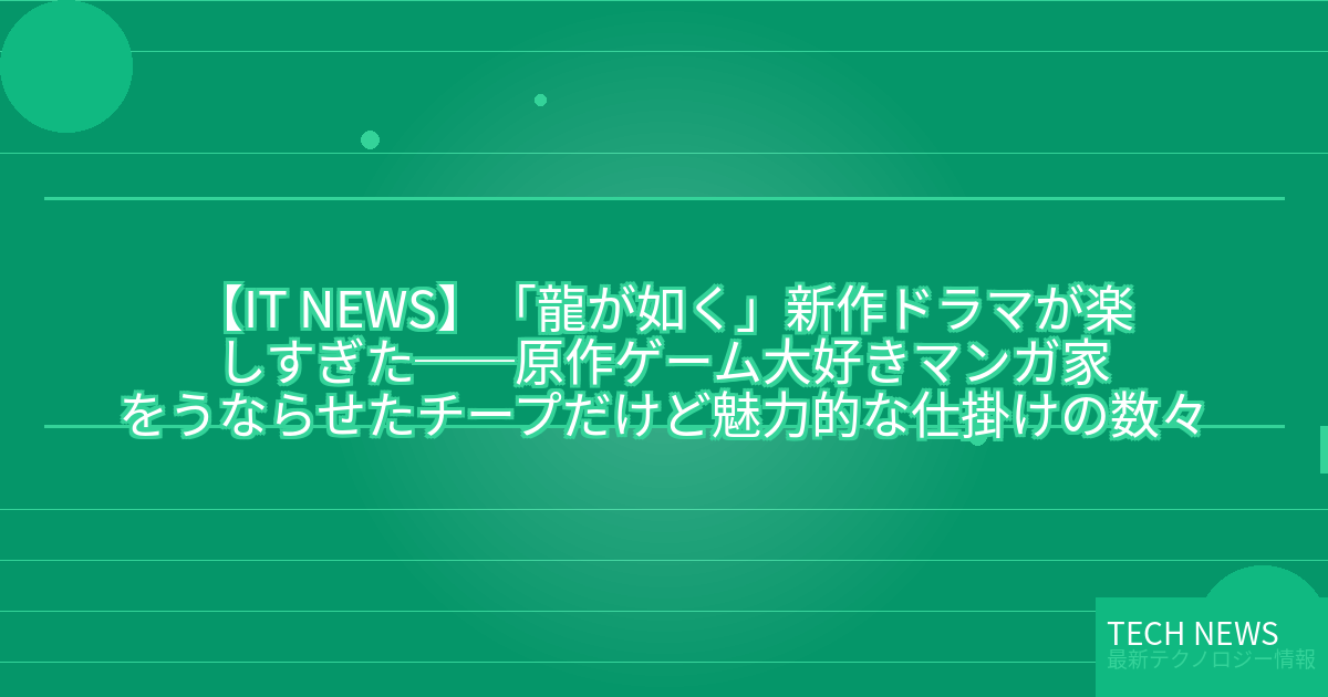 【IT NEWS】「龍が如く」新作ドラマが楽しすぎた──原作ゲーム大好きマンガ家をうならせたチープだけど魅力的な仕掛けの数々