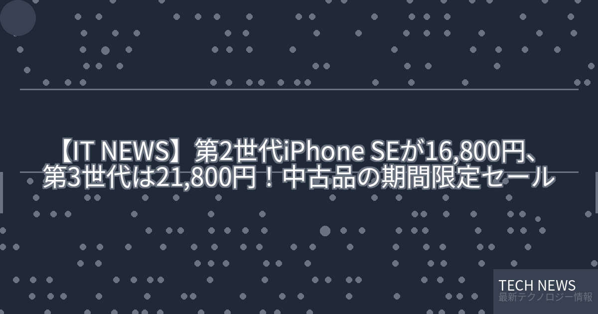 【IT NEWS】第2世代iPhone SEが16,800円、第3世代は21,800円!中古品の期間限定セール