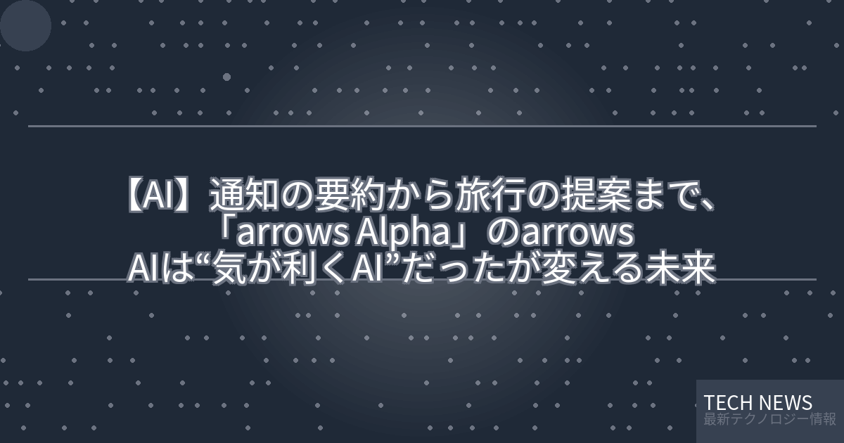 記事タイトル:通知の要約から旅行の提案まで、「arrows Alpha」のarrows AIは“気が利くAI”だった