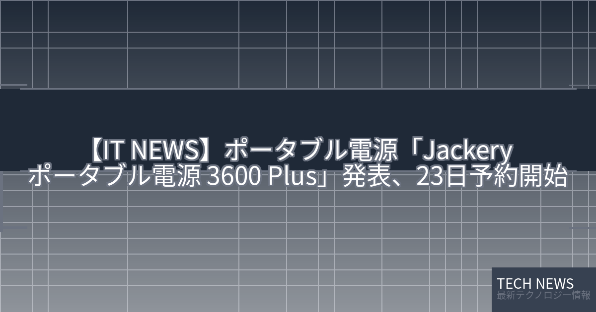 記事タイトル:ポータブル電源「Jackery ポータブル電源 3600 Plus」発表、23日予約開始
