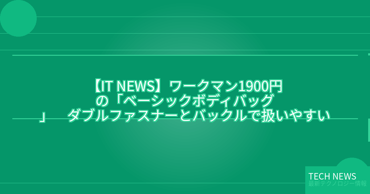 記事タイトル:【ワークマン】1900円の「ベーシックボディバッグ」 ダブルファスナーとバックルで扱いやすい