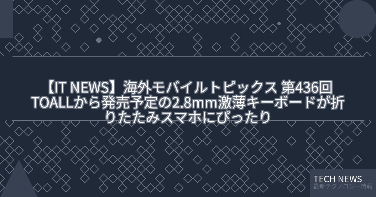 ・元記事タイトル:海外モバイルトピックス 第436回 TOALLから発売予定の2.8mm激薄キーボードが折りたたみスマホにぴったり