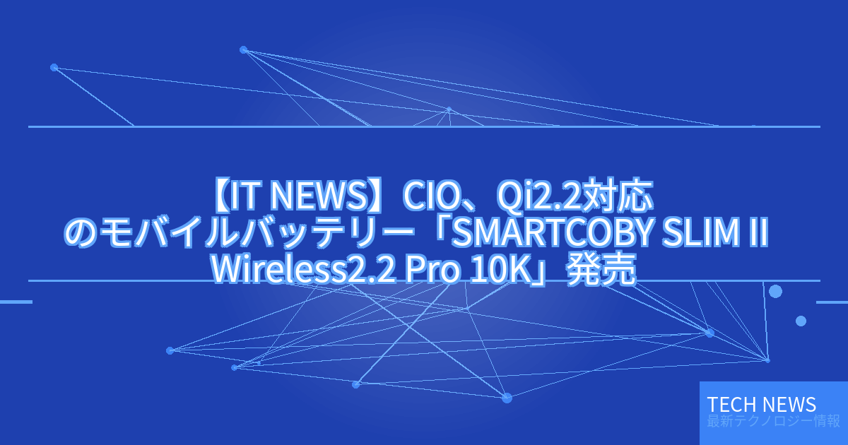 記事タイトル:CIO、Qi2.2対応のモバイルバッテリー「SMARTCOBY SLIMⅡ Wireless2.2 Pro 10K」発売