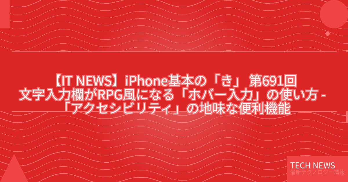 ・元記事タイトル:iPhone基本の「き」 第691回 文字入力欄がRPG風になる「ホバー入力」の使い方 – 「アクセシビリティ」の地味な便利機能