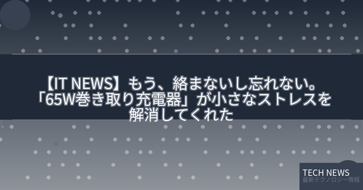 記事タイトル:もう、絡まないし忘れない。「65W巻き取り充電器」が小さなストレスを解消してくれた