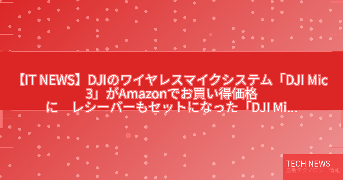 記事タイトル:DJIのワイヤレスマイクシステム「DJI Mic 3」がAmazonでお買い得価格に レシーバーもセットになった「DJI Mic 3(1 TX + 1 RX)」は2万8600円