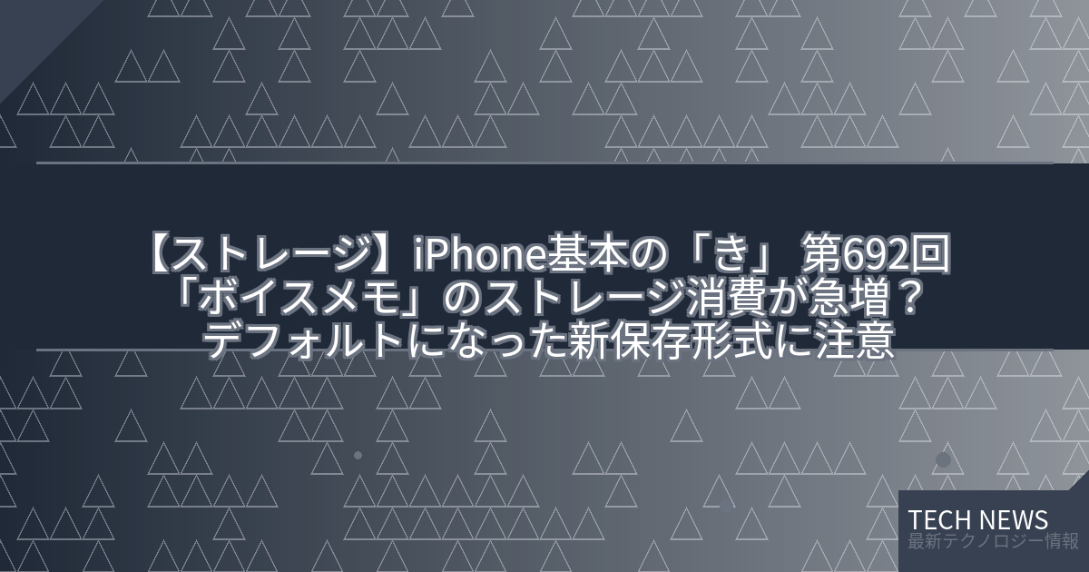 ・元記事タイトル:iPhone基本の「き」 第692回 「ボイスメモ」のストレージ消費が急増? デフォルトになった新保存形式に注意