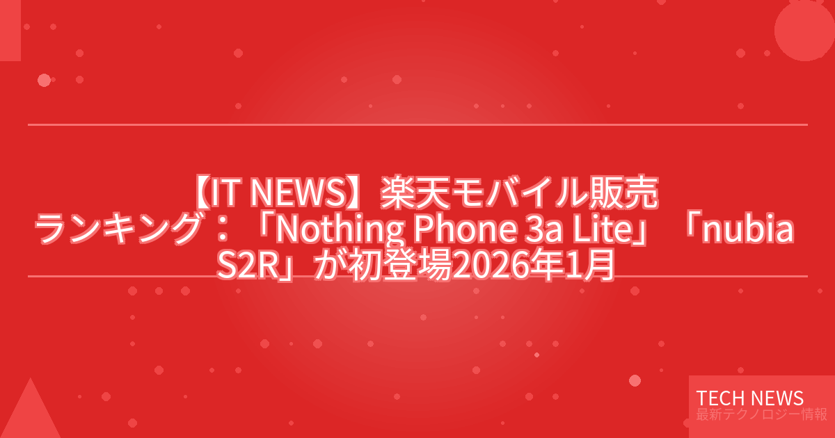 【IT NEWS】楽天モバイル販売ランキング:「Nothing Phone 3a Lite」「nubia S2R」が初登場2026年1月