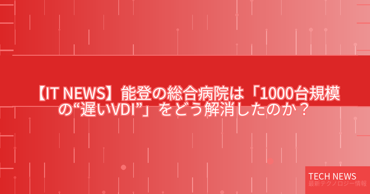 【IT NEWS】能登の総合病院は「1000台規模の“遅いVDI”」をどう解消したのか?