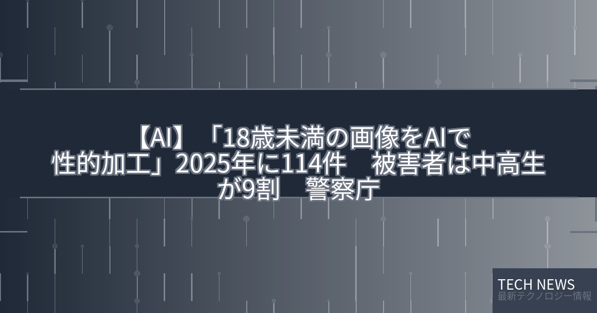 記事タイトル:「18歳未満の画像をAIで性的加工」2025年に114件 被害者は中高生が9割 警察庁