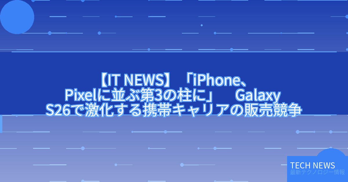 記事タイトル:「iPhone、Pixelに並ぶ第3の柱に」 Galaxy S26で激化する携帯キャリアの販売競争