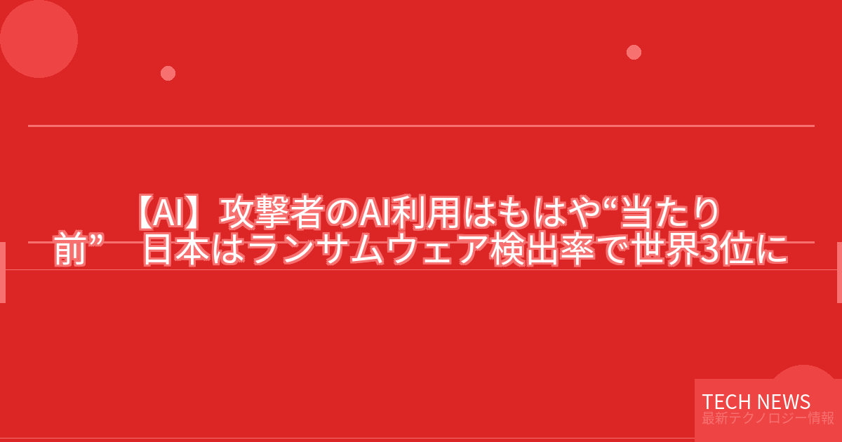 記事タイトル:攻撃者のAI利用はもはや“当たり前” 日本はランサムウェア検出率で世界3位に