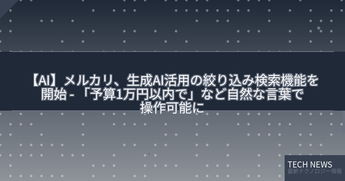 記事タイトル:メルカリ、生成AI活用の絞り込み検索機能を開始 – 「予算1万円以内で」など自然な言葉で操作可能に