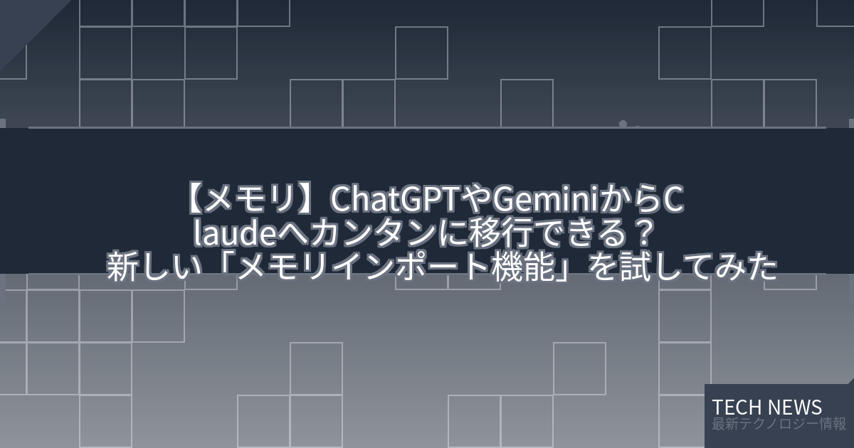 ・元記事タイトル:ChatGPTやGeminiからClaudeへカンタンに移行できる? 新しい「メモリインポート機能」を試してみた