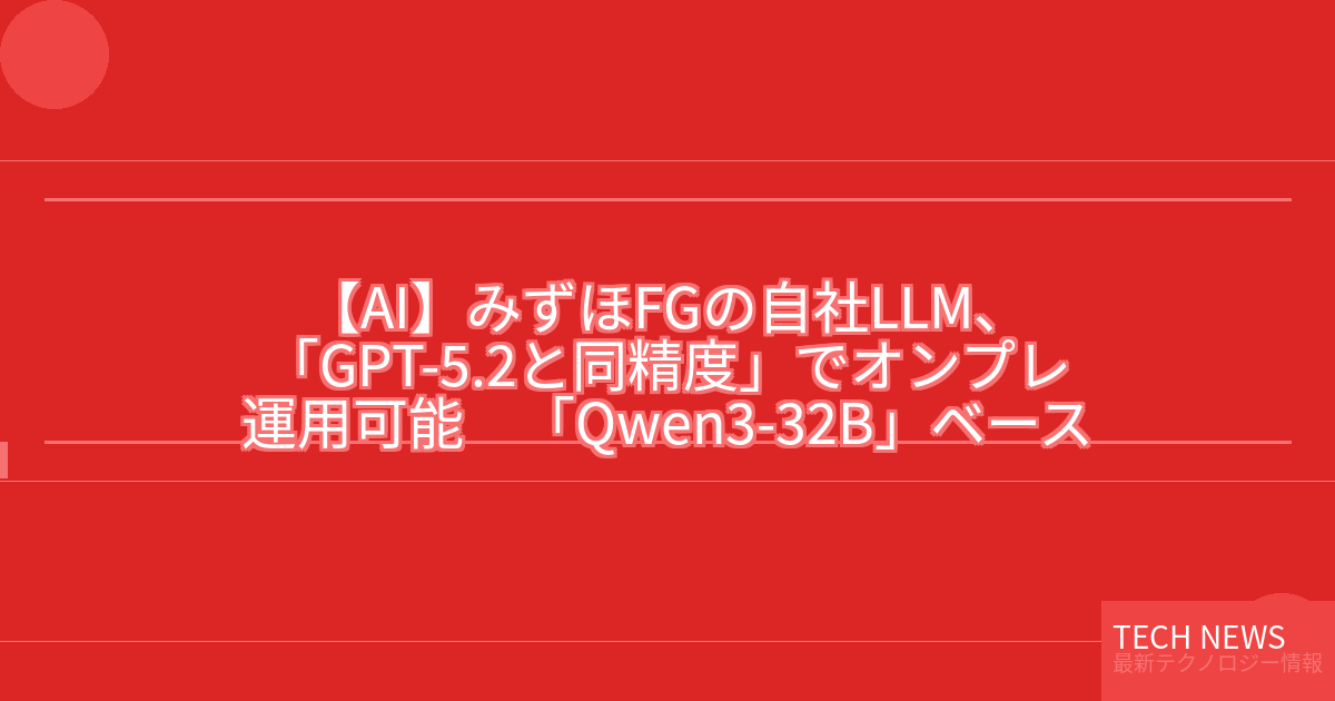 記事タイトル:みずほFGの自社LLM、「GPT-5.2と同精度」でオンプレ運用可能 「Qwen3-32B」ベース