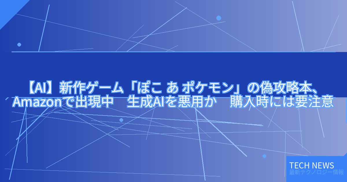 このニュースは、ポケモン社の新作ゲーム「ぽこ あ ポケモン」の偽攻略本がAmazonで出現したことを報告しています。この問題の背景には、近年急速に発展してきたテキスト生成AIの技術が関係していると考えられます。