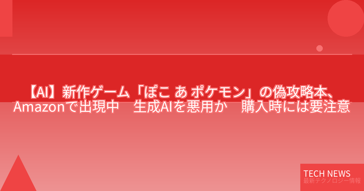 記事タイトル:新作ゲーム「ぽこ あ ポケモン」の偽攻略本、Amazonで出現中 生成AIを悪用か 購入時には要注意