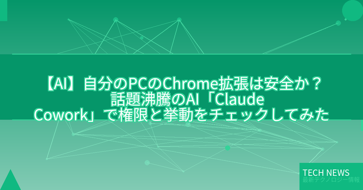 記事タイトル:自分のPCのChrome拡張は安全か? 話題沸騰のAI「Claude Cowork」で権限と挙動をチェックしてみた