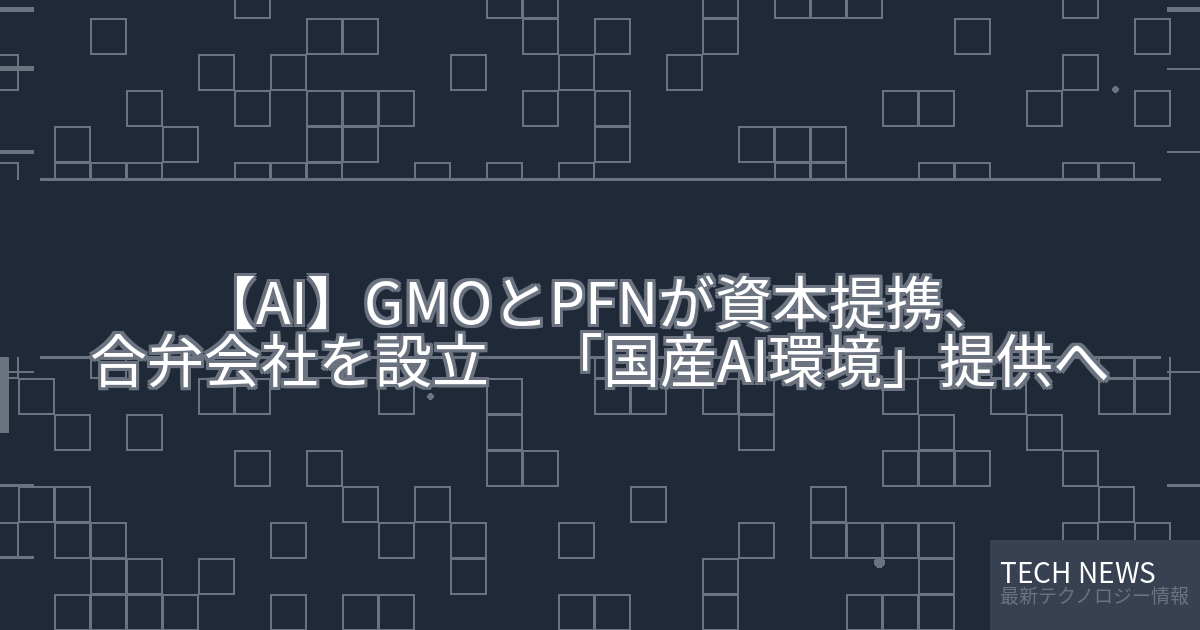 記事タイトル:GMOとPFNが資本提携、合弁会社を設立 「国産AI環境」提供へ
