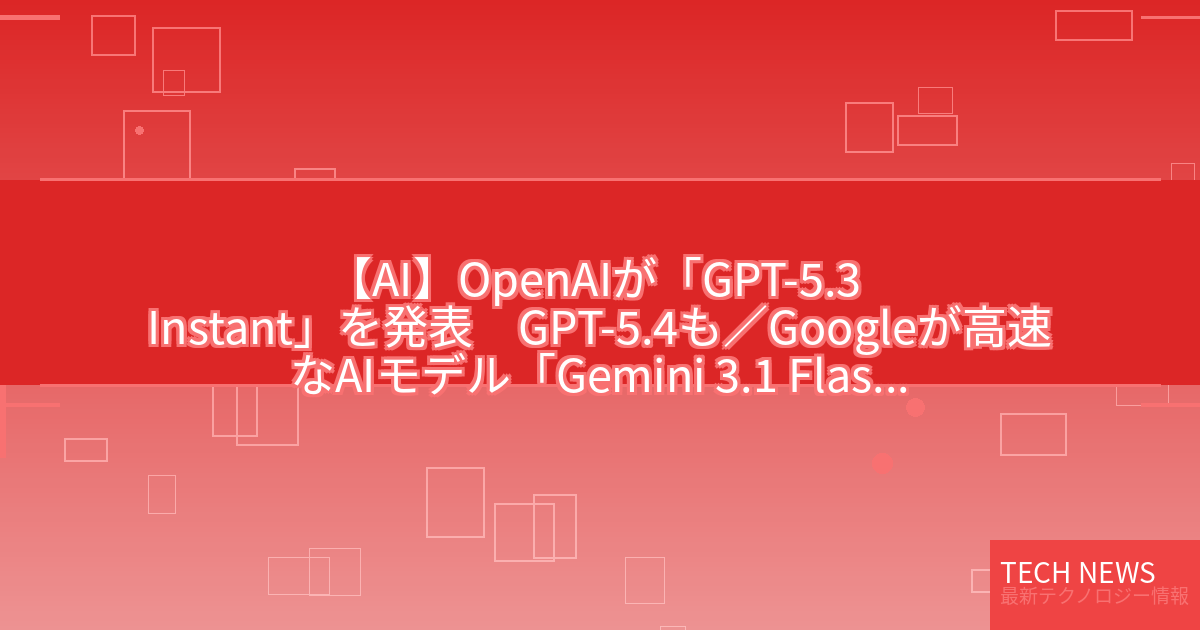 ・元記事タイトル:OpenAIが「GPT-5.3 Instant」を発表 GPT-5.4も/Googleが高速なAIモデル「Gemini 3.1 Flash-Lite」を公開