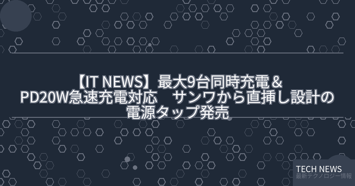 記事タイトル:最大9台同時充電&PD20W急速充電対応 サンワから直挿し設計の電源タップ発売