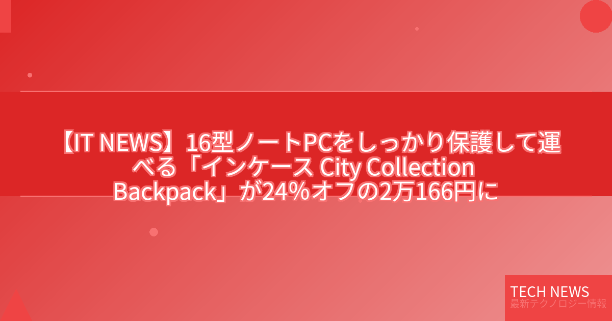 記事タイトル:16型ノートPCをしっかり保護して運べる「インケース City Collection Backpack」が24%オフの2万166円に