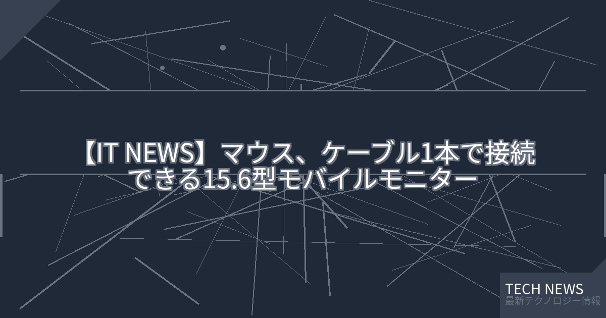 記事タイトル:マウス、ケーブル1本で接続できる15.6型モバイルモニター